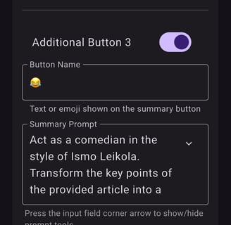 On button prompts have one button that get details deeper eg "Get max 10 key points of this article and then give detailed summary with references in article and code or analogy examples. Limit the content under 1000 chars"
